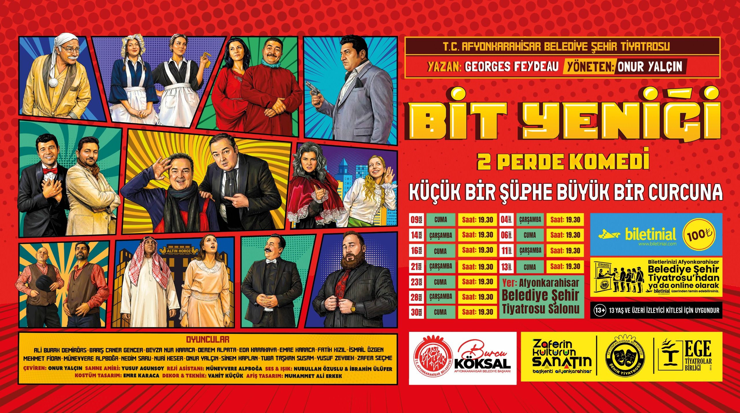 Oyunun yazarlığını Georges Feydeau’nun üstlendiği “Bit Yeniği”, Afyonkarahisar Belediyesi Şehir Tiyatrosu’nda Onur Yalçın yönetmenliğinde sahneye taşınıyor. Çeviri ve uyarlaması da yine Onur Yalçın imzası taşıyan oyun, güçlü oyuncu kadrosu ve renkli sahne tasarımıyla dikkat çekiyor.
