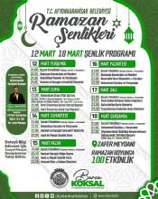Afyonkarahisar Belediyesi tarafından Zafer Meydanı’nda düzenlenen Ramazan etkinlikleri ve şehrin farklı noktalarında gerçekleştirilen iftar buluşmaları Ramazan ayının son haftasında da devam edecek.